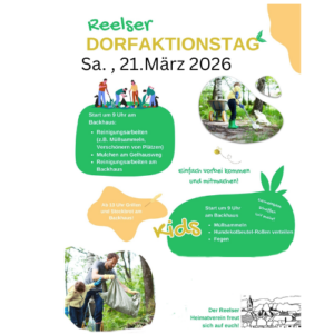 Wie jedes Jahr veranstaltet der Heimatverein Reelsen einen Dorfaktionstag, um Aufräumarbeiten und Reparaturarbeiten in und rund ums Dorf durchzuführen, auch die Spielplätze werden aufgeräumt.